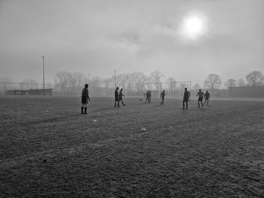 Onze vrienden van Helpman op bezoek. Onder aanvoering van old captain (dat staat in ieder geval achter op zijn shirt) Ammerlaan zullen ze proberen de punten te stelen zoals wij dat eerder dit seizoen op de Esserberg in extremis wisten te doen. Even heb ik het idee dat we tegen Forward spelen als ik hoor dat een van de Helpernezen de aanvoerder om half vijf ’s ochtends heeft geappt dat zijn fiets is gestolen. Na de reactie: “Geen probleem dan halen we je wel op” werd niet meer van de beste man vernomen. Een wissel minder dus. Dat begint gunstig.