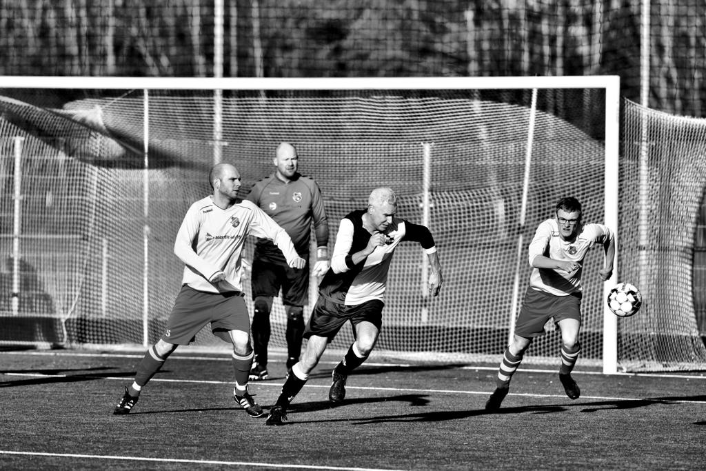 Eenmaal ingetrapt en afgetrapt ging OZW door waar het maanden geleden in Farmsum gebleven was. Rondspelend, vrijlopend, duellerend, spelverleggend, dichtlopend, kansen creëerend en ga zo maar door. Maar ook: kansen missend. Zowel de buitenkant voet van Michiel, dakpan van Arjan en lob met buitenkant voet van Wim mochten niet baten. Ook de enige vrije bal die Lars maximaal per seizoen maakt was vorige week al verbruikt. Kortom: met een onverdienstelijke 0-0 de rust in.