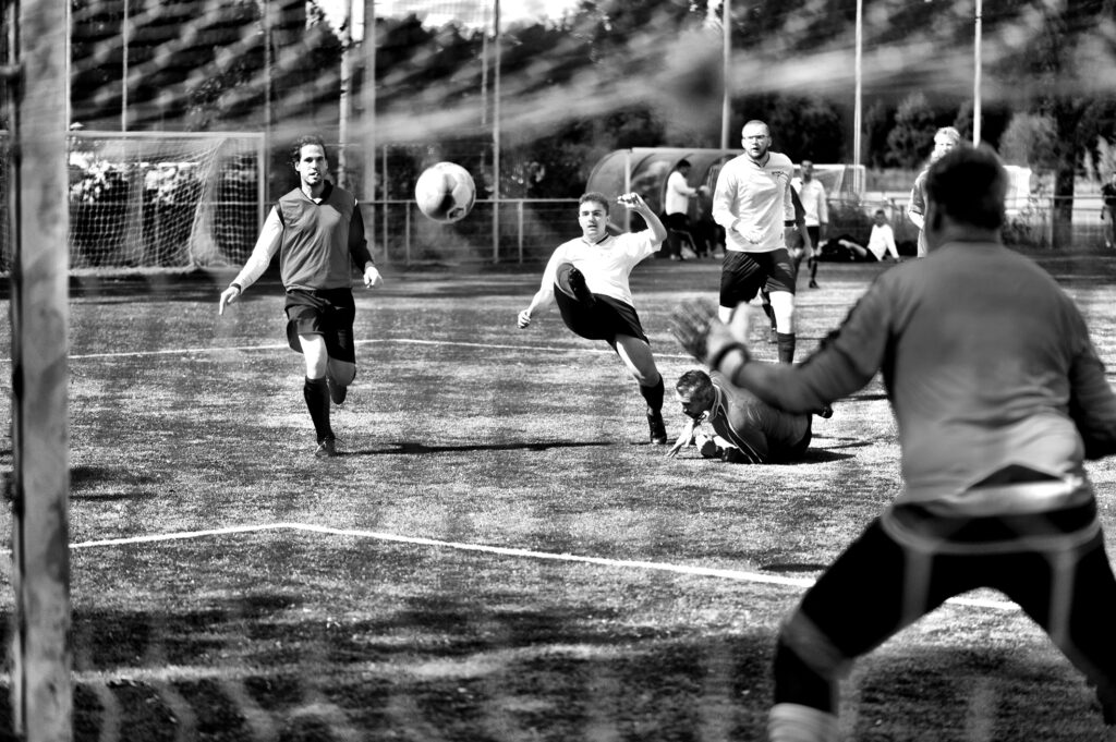 Zo probeerde Lars ook nog eens wat uit. Een schot uit de aftrap en een mislukt stiftje over de muur voor de inkomende TJ. Roode probeerde eens een voorzet met links en dat liep een stuk beter af. Die bal zeilde namelijk over de keeper heen in de verre hoek: 4-3. Gruno leek gebroken en begon zich steeds meer bezig te houden met Leen. Voetballen kwam er mede door de warmte niet echt meer van. Na een combinatie met Wim belandde een shot van Lars nog op de paal en andere aanvallen strandden in schoonheid. Toch perste Gruno er nog één aanval uit en die leidde tot 4-4. Een eindstand waar we mee moeten en kunnen leven. De kop is eraf en OZW is klaar voor een nieuw voetbaljaar!